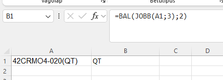Felső sarka a B4-ből indul. A felette lévő gomb menti le az aktuális adatokat, fejléccel, sorazonosítókkal együtt, majd törli az egészt és másolja fel az előre legyűjtött listákat mind a fejlécbe, mind az alapanyag kódokat.