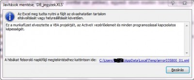 nem vagyok nagy hozzáértő: a fájlt már megnyitja működik is minden de egy ilyen üzenetem még van: