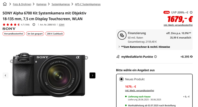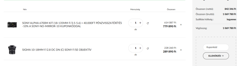 Tegnap betettem az a6700 plusz 18-135mm kombót a kosárba.