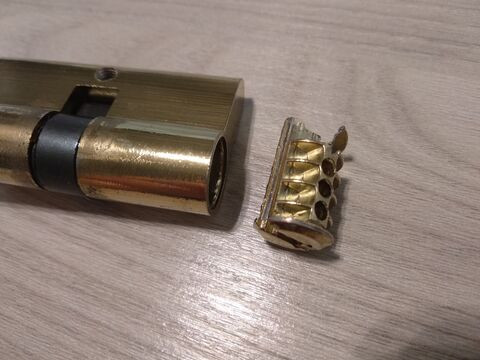 Ez ilyen hengerzár betét? Azt olvastam, hogy azt egy nagy fogóval el lehet törni, ha így kilóg a felszínből. Én még nem próbáltam, de egy nagyobb vízpunepafogó tuti jó megoldás lehet. 1 kis reccsenés, és voilá...