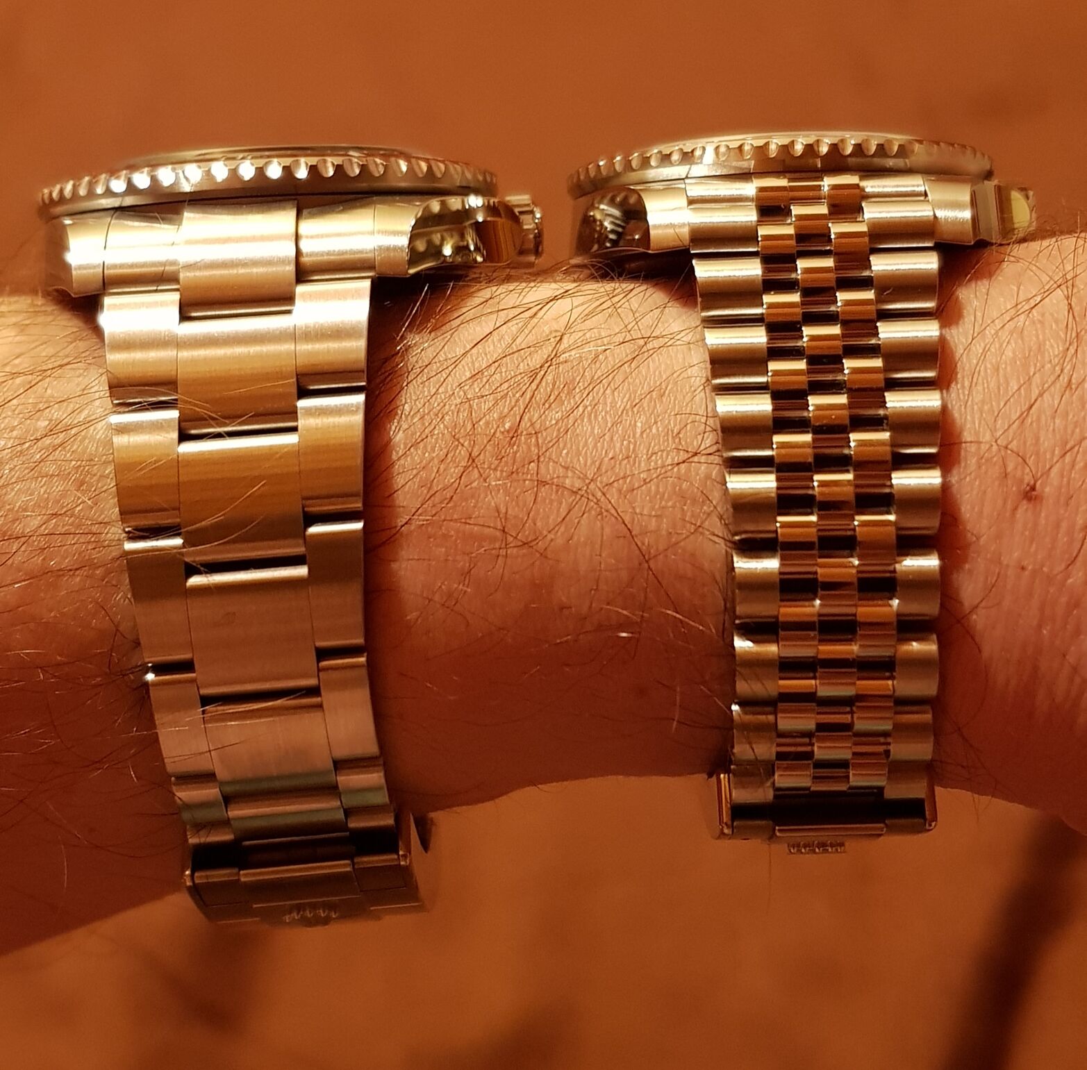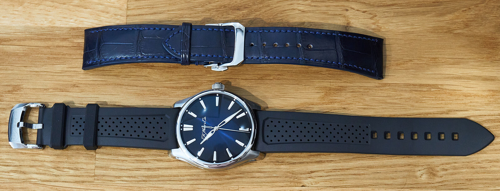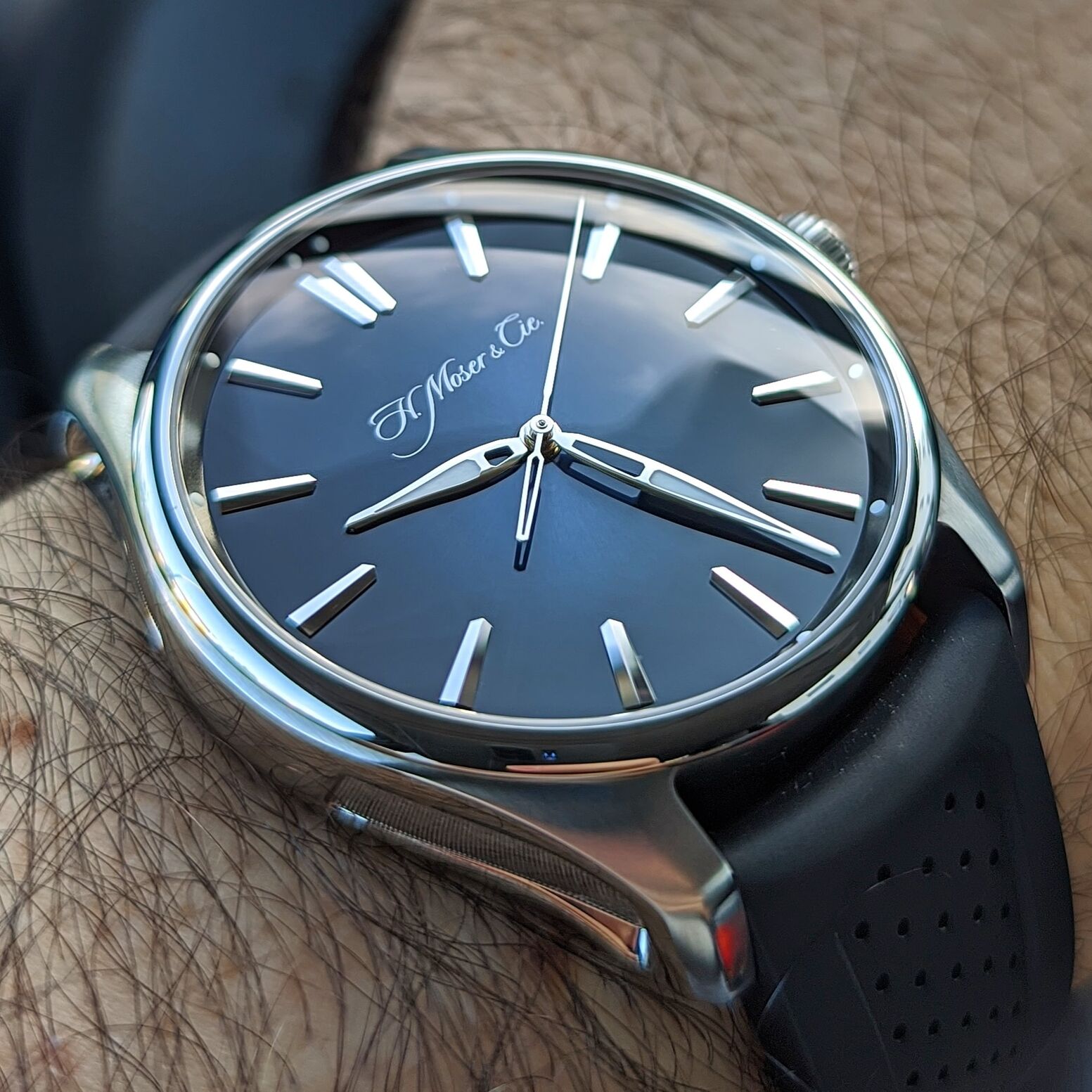 Nem akartam showt...a két óra az ég és föld mint ellentétek minden tekintetben...és szép óra a Moser, nyilván nekem nem stílusom, mert úgy néz ki rajtam, minr majom a köszörűkövön...de ismerve Wizardot, s látva rajta, neki pont a típusa...