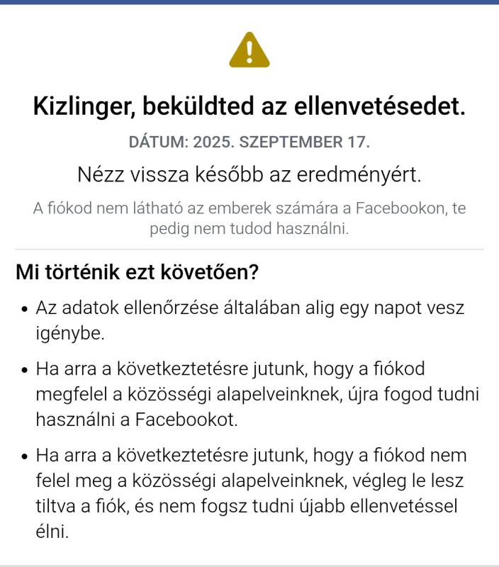Nem értem miért, mert előzetes értesítés, figyelmeztetést nem érkezett. Nem tudom mivel és mit sértettem meg, ez a legnagyobb probléma, és hiányosság.