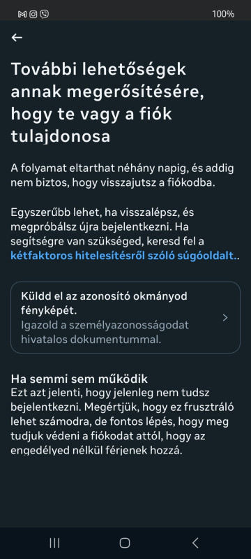 Így kaptam kódot e-mailre végigmentem a hitelesítésen akkor látom, hogy valószínűleg a támadó kétfaktoros hitelesítést állított be, kérte a hitelesítő kódot, szerencsére volt más módszer így végül eljutottam oda, hogy szelfi hitelesítés kért.