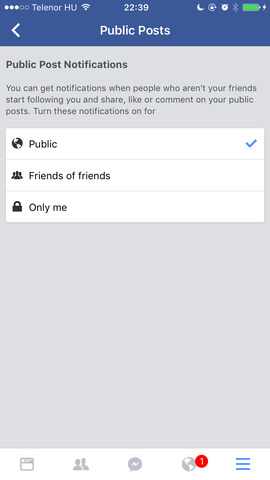 Azt lehet állítani, ha jól értelmezem, hogy milyen "szinten" megosztott bejegyzések esetén küldjön értesítést.(#17400) bigdady: Még annyi kiegészítés, hogy nem igazán értem az "only me" feliratot, mármint ahhoz elvileg nem szólhat hozzá senki