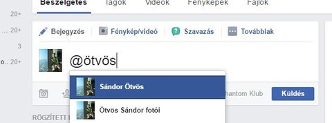 Vagy a poszt készítésénél van a szövegdoboz alatt egy "tag friends" (megjelölés) gomb, és akkor csak oda kell írogatni a névrészleteket.