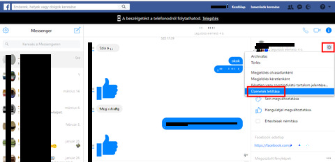 1. Gépen megnyitsz "messengerben" egy másik beszélgetést (szóval nem csak a kis chat ablakot) és oldalt, ahol az övét is listázza, ha fölé viszed az egeret, megjelenik egy fogaskerék, amire kattintva törölheted, anélkül, hogy belelépnél.
