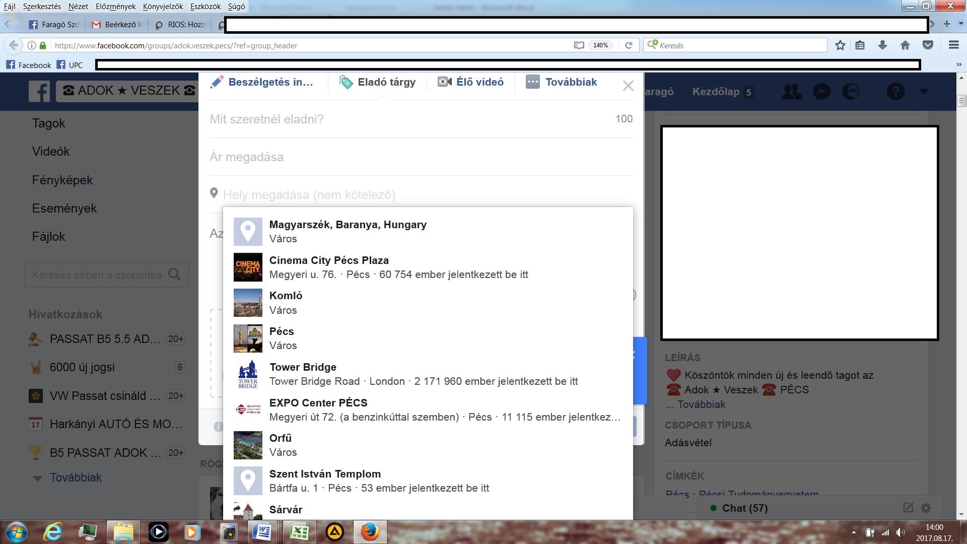 sziasztok olyan kérdésem lenne, hogy létrehoztam fb-n a vállalkozásuknak egy oldalt, és szeretném amikor egy másik pl. adok-veszek csoportban teszek fel hirdetést, akkor a helynél megjelölni a vállalkozás oldalát, el is kezdem írni a nevét az oldalnak, de nem hozza ki a felajánlott tételek között