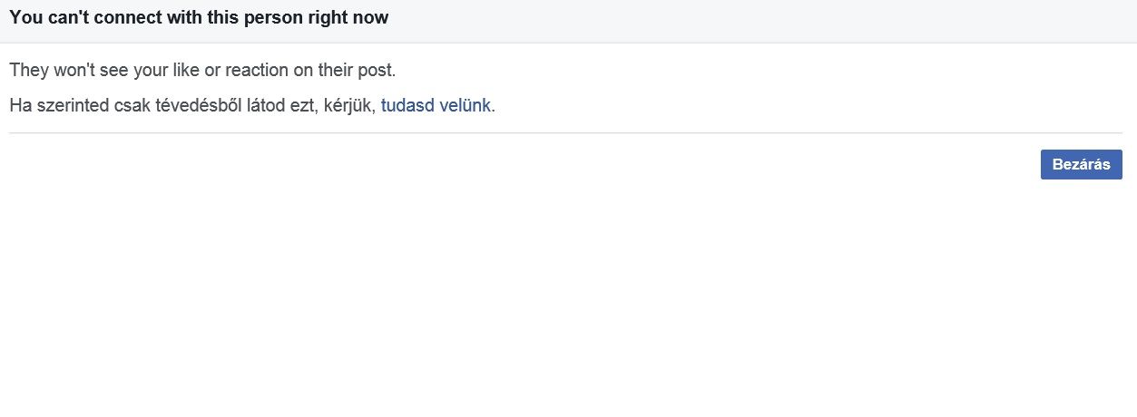 Itt valószínűleg akkor úgy utasítottak el, hogy ne is jelölhessek újra, az oldalát, képeit, stb látom, üzenetet is tudok küldeni, csak a jelölés gomb nincs sehol (se az, hogy ismerősnek jelöltem). -