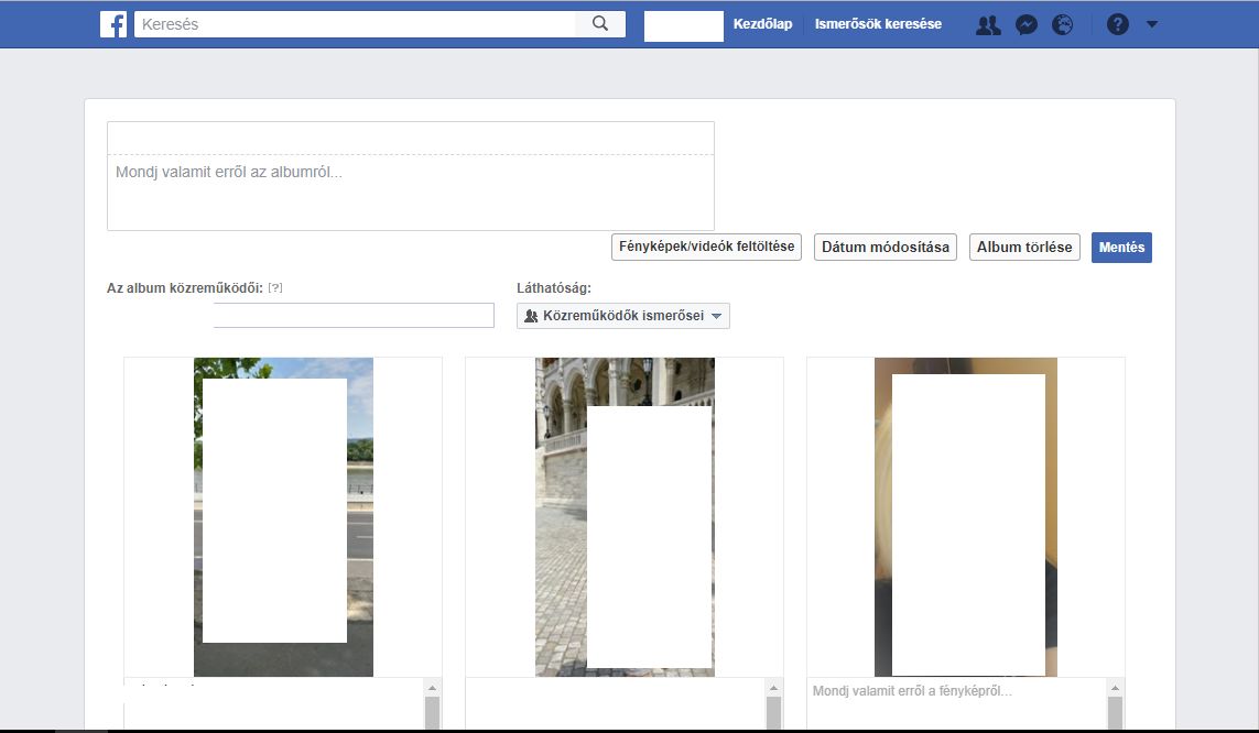 Suliban dolgozom és a suli facebook oldalára töltött ma fel kolléganő egy albumot, de hibás dátummal a címben. Viszont sehogy se tudom szerkeszteni.. Az én saját facebookomban ha rákattintok egy albumra bejön minden adat róla, és látom, hogy hol lehet szerkeszteni a nevet. A sulisnál viszont ha rákattintot a Fényképek-Albumok menüpontban az adott albumra, nem azt tölti be, hanem az összes képet ömlesztve, és sehol nem tudom megváltoztatni az album nevét, vagy bármilyen más tulajdonságát, mivel, hogy nem is magát az albumot nyitja meg. Ez miért lehet? És hogy tudnám átnevezni?