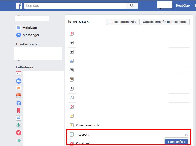 Hogyan tudok ismerőslistát törölni? Csak átnevezést, visszaállítást meg módosítás funkciókat találok.