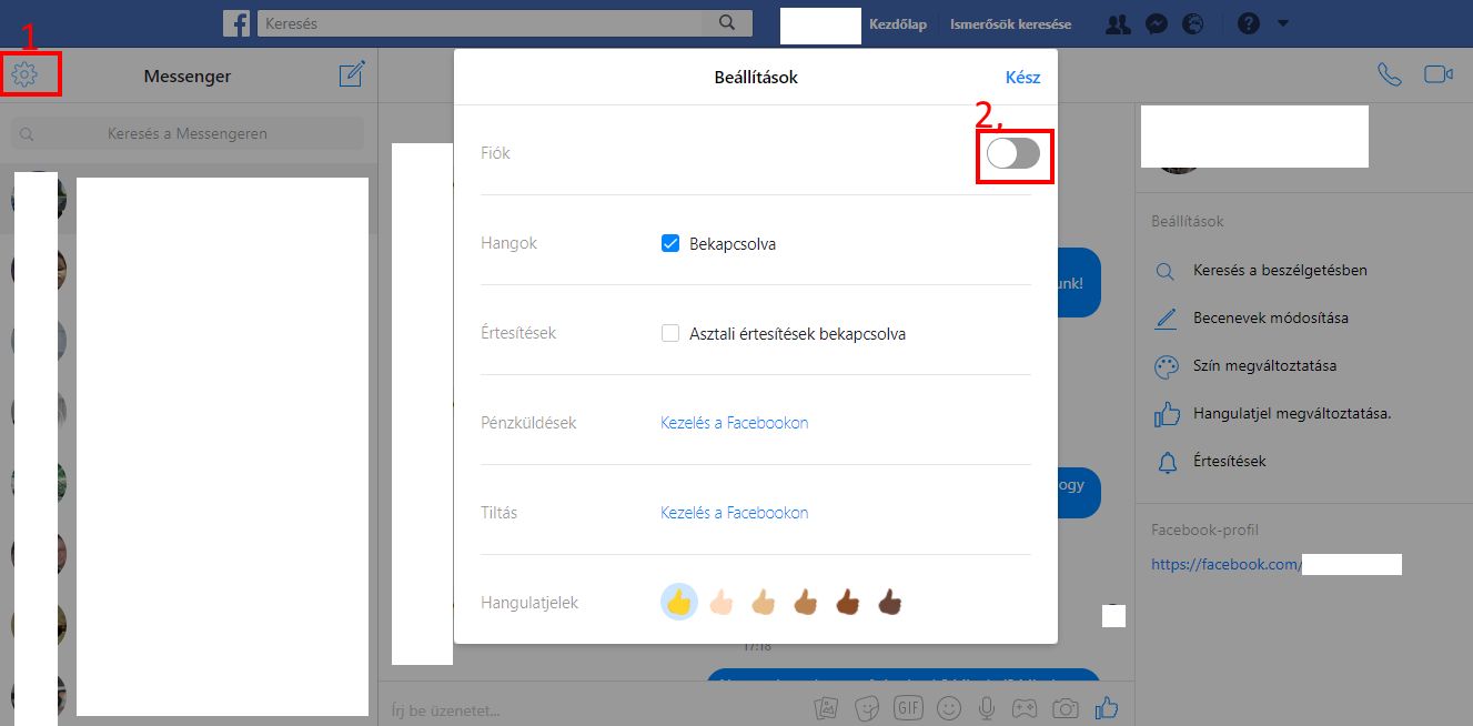Messengerben hol lehet beállítani az állapotot?