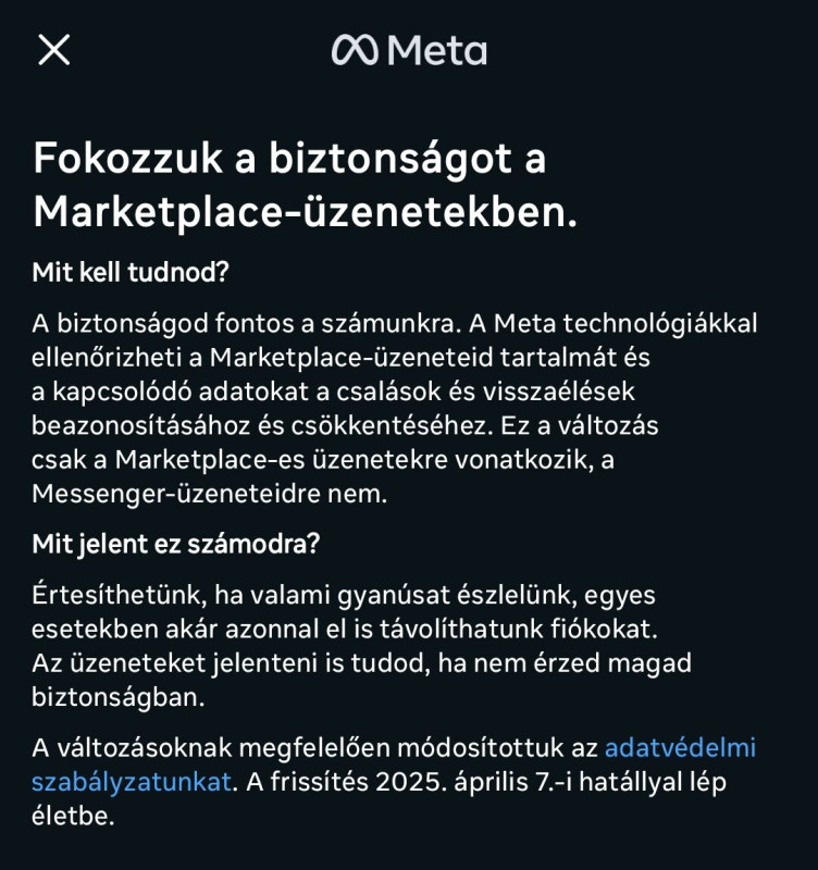 Ha rányomok, azt írja, hogy április 7-én lép életbe. Abban reménykedem, hogy visszaadják az indoklás nélkül elvett Marketplace-hozzáféréseket. Ezt írja amúgy ki: