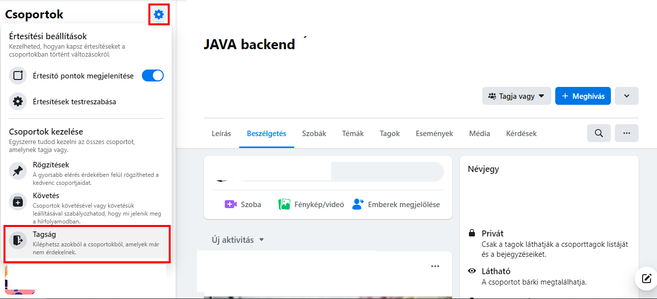 Belépsz az idővonaladra majd rámész az oldaladra, aztán a beállításokba, és ott van legalul.