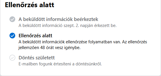 Erre a címre érkezett egy megerősítő kód, majd ezt megadva tovább léptem a folyamatban ahol a személyigazolvány általi ellenőrzést választottam, majd feltöltöttem a szükséges képet.