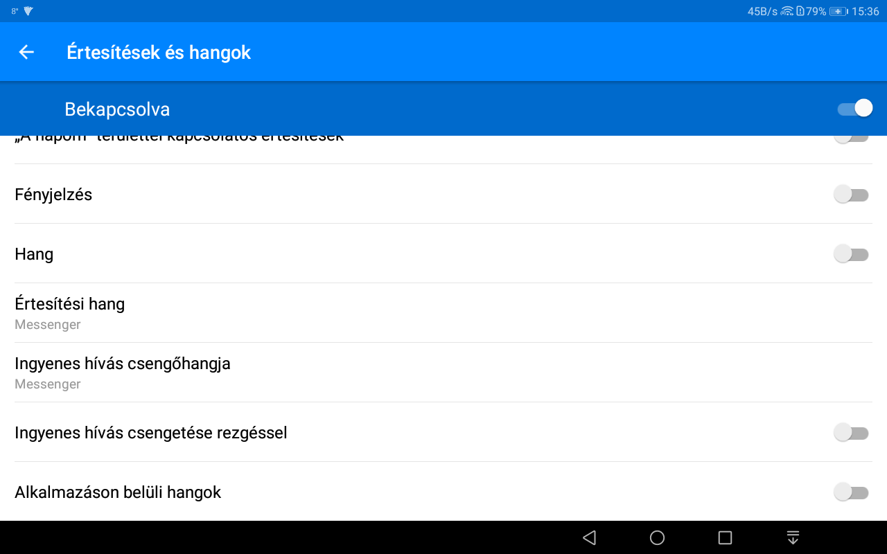 Helló. A messengert hogy tudom véglegesen némitani? Tableten nem kell jelzés de az összes jelzést csak 24 órára tudom offolni viszont ha külön mindent kikapcsolok ugyan úgy csipog. A hang is ki van kapcsolva