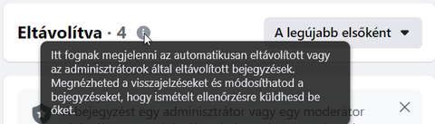 be van kapcsolva az automatikus cenzúra. Még nem találtam meg, hol is lehet ezt aktiválni. Nem jön fel neked a törlés után Facebook értesítés? Vagy az Adminisztrációs asszisztensben van valami személyre szabott szűrő bekapcsolva. -