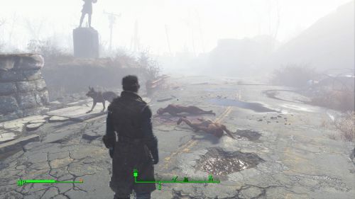 Már felvettem a t45 öt, de gondolom majd respawnolnak oda a dolgok nem?2 rohadt nagy robot volt, majdnem kinyírtak, úgy nyomattma magamba a stimpaket mint stóhl buci a kokót