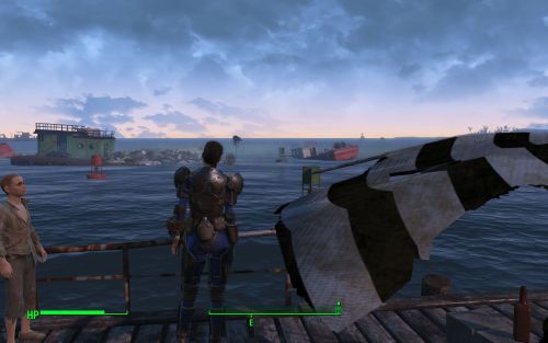 Ez is igaz, az viszont megint csak lol, hogy miután fejbe lőttem őket sniperrel, többször is egymás után, még akkor sem támadtak rám. Először azt gondoltam hogy ez egy bug (ekkor még raidernek hittem őket), de mikor közelebb értem, akkor láttam, hogy Brotherhood of Steel, és hogy inkább arról van szó, hogy szar a szociális rendszer a játékban.