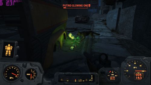 Ez azért érdekes, mert 13-as szinten, amin most vagyok a Feral Ghoul szó szerint egy lövésből fekszik. (Nagyon jó fegyó erre a 10 mm-es pisztoly, főleg, ha szert teszel a Calibrated változatára, nagyobbat sebez.) Betévedtem egy városrészbe, ott csapatostul járnak, tiszta Left for Dead érzés volt, ahogy hullámban jöttek, de nem okoztak különösebb nehézséget. Ráadásul a karakterem nem is erős különösebben, intelligenciára, meggyőző képességre van ráállítva, ezek 8-8, 3-as szerencse, állóképesség azt hiszem 4, egy-két fegyverhasználati pont elszórva és kábé ennyi. Sokat segít, ha nem Dogmeat-tal mész, hanem Codsworth-tal, az ilyen gyengébb ellenfeleket nagyon tudja osztani. Ja, és a Ghoulok gyenge pontja szerintem a lábuk. Ha az egyiket kilövöd alóluk, már nem tudnak olyan hatékonysággal támadni. VATS-ot használok szinte mindig, jelentősen megkönnyíti az ember dolgát. Nekem most a Deathclaw, a Mirelurk, a Yao guai számít legyőzhetetlen ellenfélnek, illetve bizonyos állatoknak legendary változatai, abból még a szúnyog is képes kicsinálni.
