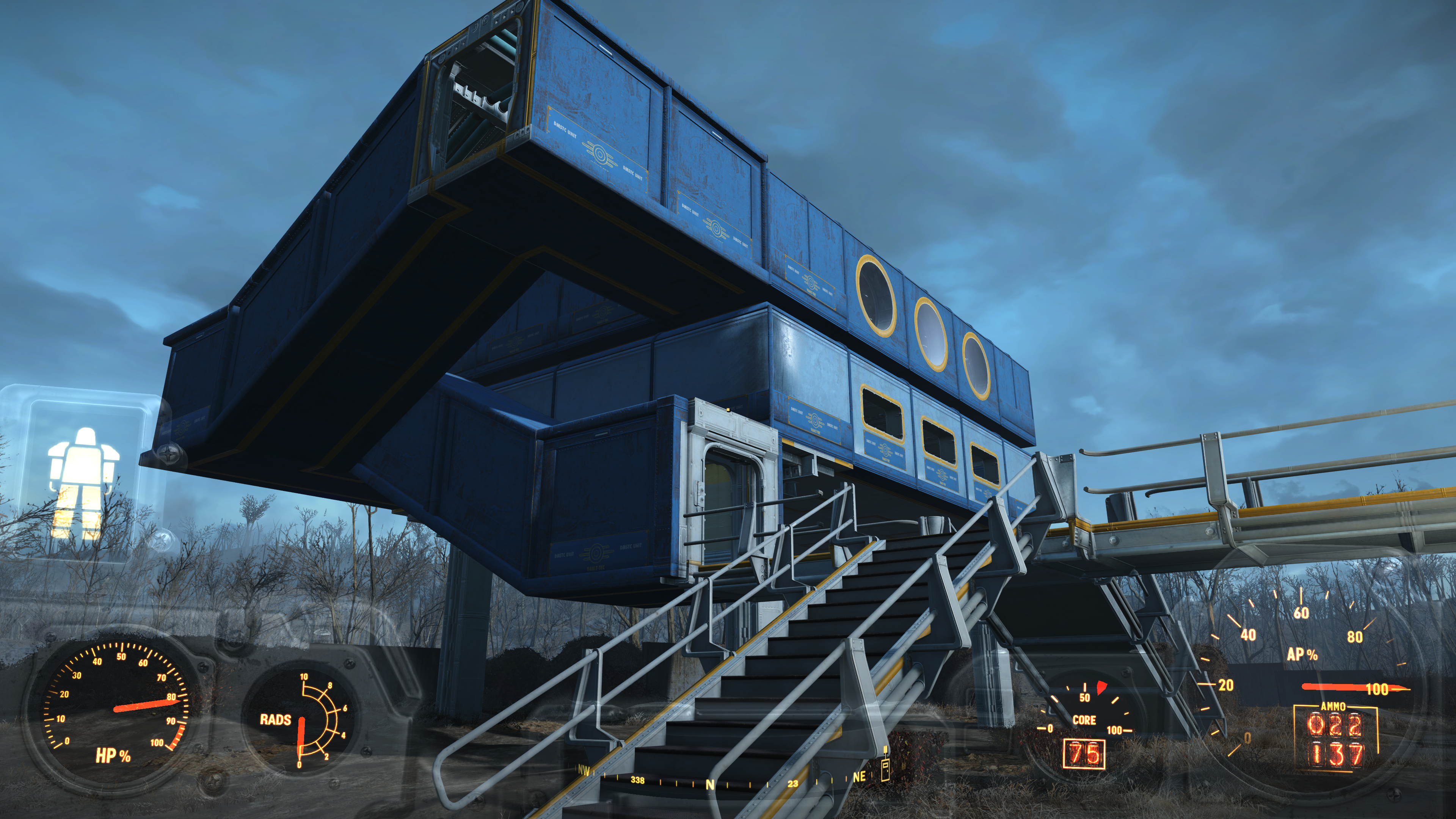 Még anno a DLC-k elött elkezdtem belakni az autós mozit, de azokat a rohadt skeletonokat nem tudom eltüntetni, ráadásul elég egyenletlen a talaj. A másik amit elkezdtem beépíteni az a coup manor de ott meg a ghoul hullák rondítanak bele. Ráadásul az épület falai romosak és így ronda.CC legalább tiszta nincs hulla se csontváz. És csak romos kis épület van de az jó generátor háznak.