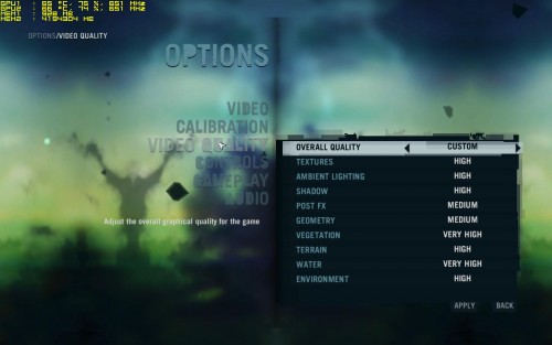 DX9-ben vagy DX11-ben játszol vele? Most próbálgattam mindenféle beállítással és úgy tűnik ez az akadozás csak DX9-ben jön elő. DX11-ben vajsimán fut, persze erősen le kell butítani a grafikát, de még így is gyönyörű szerintem. Tényleg vicces a gépigénye. 2600K (4,8 Ghz) + meghúzott GTX 590 mellett is csak az alábbi beállításokkal van meg a fix 60 fps. AA-t egyáltalán nem lehet rátenni mert azonnal leesik az fps.