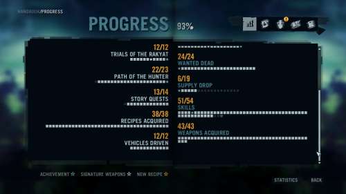 Én a játék első 8-10 óráját arra fordítottam, hogy szabadon kószáltam a szigeten, beüzemeltem a rádiótornyokat, stb, és vadásztam ezerrel. A kezdetben beszerzett bőrök árából vásároltam egy sotit, na azzal már lehet rendesen írtani. A bivalyok, egy közelről, fejre leadott lövéstől kifekszenek, a tigrisbe azért 3-4-et bele kell pumpálni. Az AK ilyen szempontból semmire nem használható, én max pár cápát tudtam elintézni vele partközelben.