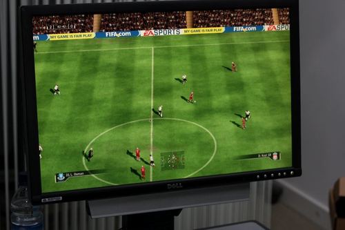 Nézzétek meg ezt a képet! Fifa09 PC verzió, sajnos az EA engedélye nélküli, így le van takarva a monitor: