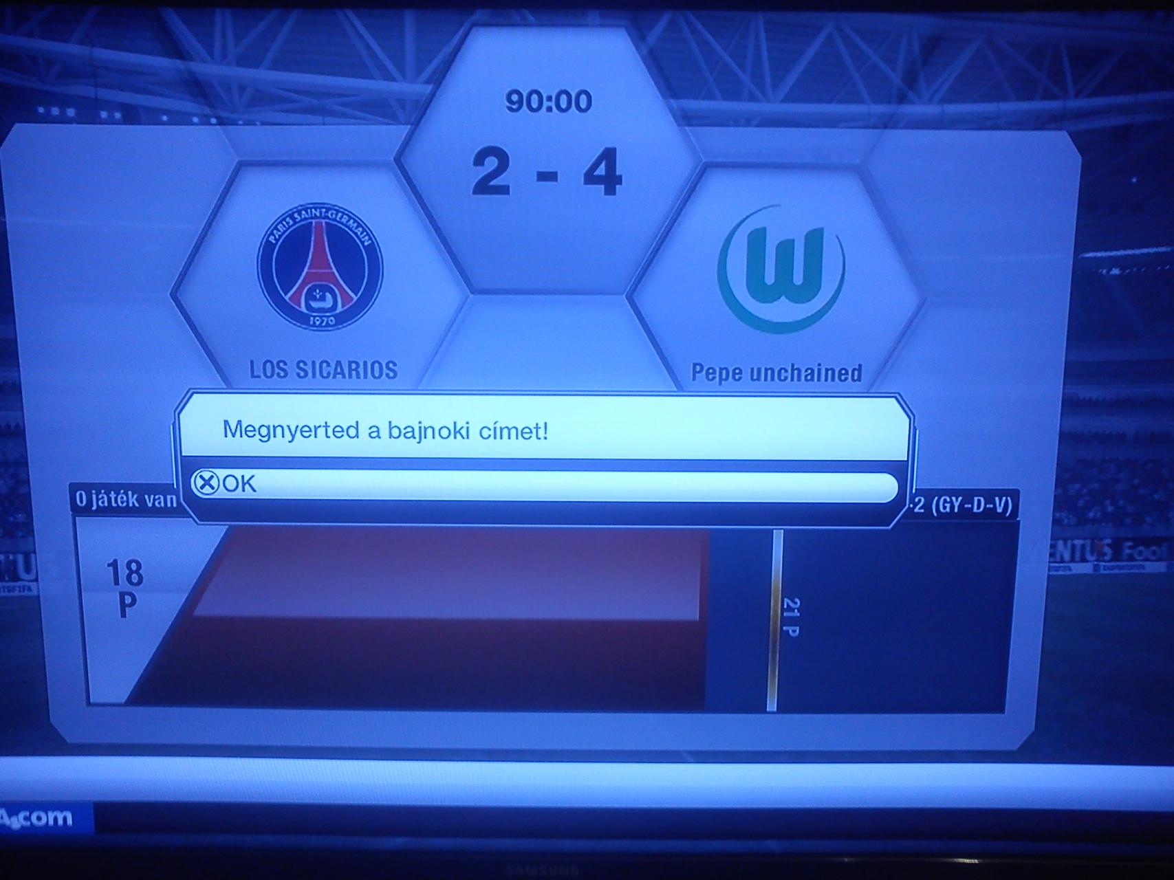 Bentekével megszerzem a vezetést, utána még mindig enyhe fölény, amiben kijátszom talán Ronaldóra (már nem emlékszem, mert utána agyfaszt kaptam hirtelen) tökéletesen a helyzetet. Nincs előtt senki, csak a kapu, be kell gurítani, de nem, ő rábassza a felső kapufára. Szerintem ezredjére FIFÁS pályafutásom alatt, de ilyet még soha nem csinált egyik játékosom sem.