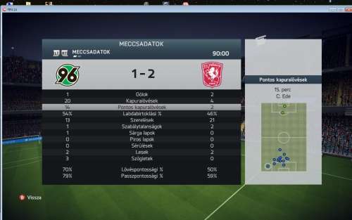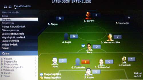 Adott egy játszani nem tudó ellenfél, becsúszás és elrúgás "profi". Első félidőben 0 azaz NULLA kapura lövés (mind a két fajta) volt neki aztán a második félidő elején bárhogy szereltem egyszerűen nála maradt a labda, lehetetlen irányból pattant vissza hozzá, összeakadtak az emberek, a játékosaim lelassultak. Nem kell mondanom meg is lett az eredménye egy béna begurítós gól formájában. A 85. percben aztán jött a szokásos csites fejes gól. 90.ben operáltam egy góllal de semmi értelme nem volt...Természetesen az én lövéseim rendre kipattantak vagy védte a kapus, kapufám is volt de gól is csak akkor amikor már mindegy volt.