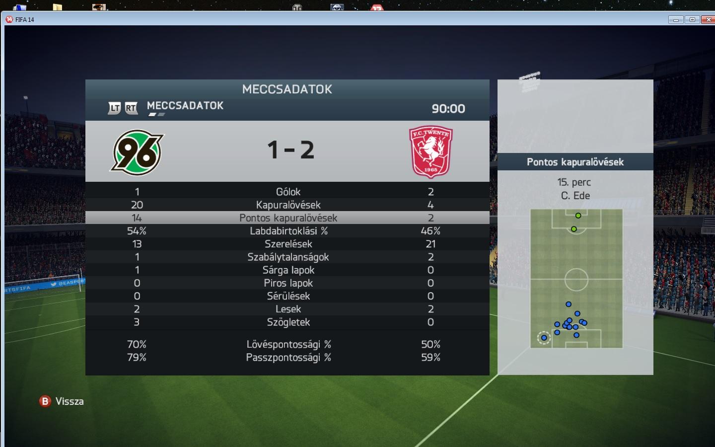 A másik meccsen pedig jobb voltam az ellenfélnél, ötven valahányadik percig 4-2 nekem, aztán jön fel a srác valahogy 4-3 még mindig nekem. Ám a vége az, hogy a 90. percben, nem egy, hanem két gólt is szerez, és ő nyert 5-4-re! Ja ebből majdnem mind fejes gól neki, pedig Kompany David Luiz CB párossal voltam a pályán, de cseszhettem, mert az egyiket David Villa, a másikat Pedro fejelte!