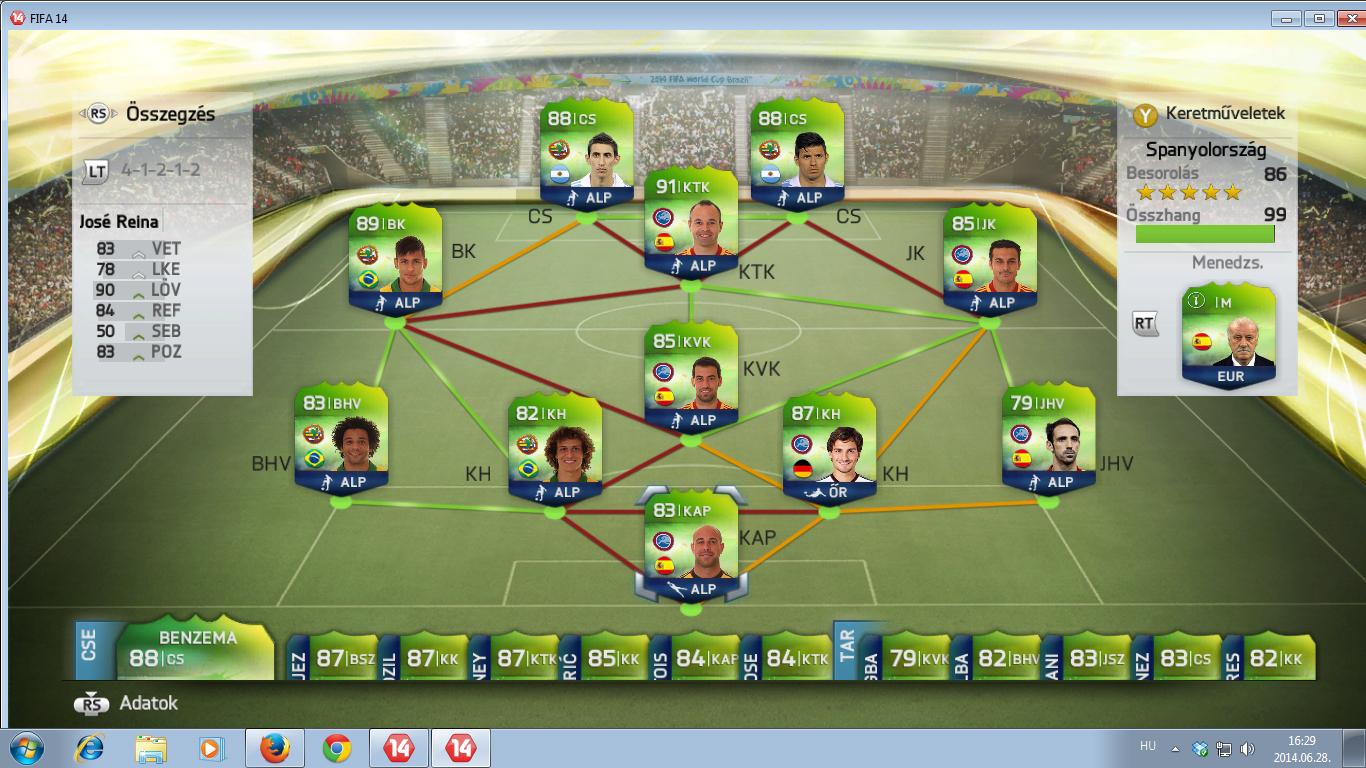 Mivel az olasz csapatnál nagyon hézagosnak éreztem a védelmet ezért franciába gondolkodtam. Kis segítséggel ezt hoztam össze, idáig 1 meccs de ott elég jónak éreztem őket, pont illenek a játékstílusomhoz, lehet, hogy nem véletlen tolom állandóan psg-vel a sima fifa14 idényeket.
