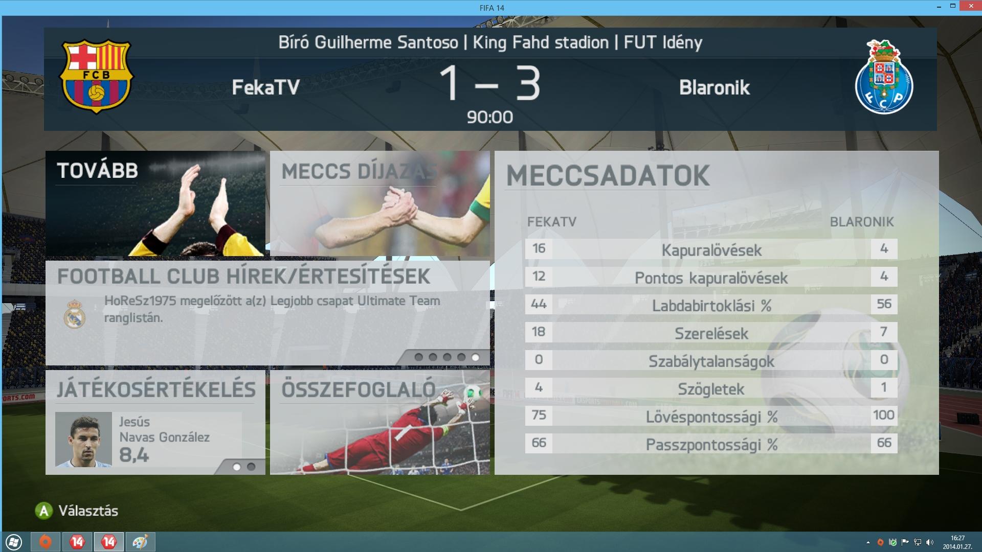 Utána volt egy olyan meccsem, hogy félidő 0-0, de jól ment a meccs, több volt a helyzetem is, mint az ellenfélnek, majd elkezdődött a 2. félidő és zsinórban 3 gólt kaptam! Ebből az első olyan volt, hogy a 2 CB között Isco háttal a kapunak, kb. 1m-rel a föld felett, tehát kurva alacsonyan, majdnem hogy fekve, beollózza. Ezután már jött a lejtő és a vége 4-1 lett az ellennek.