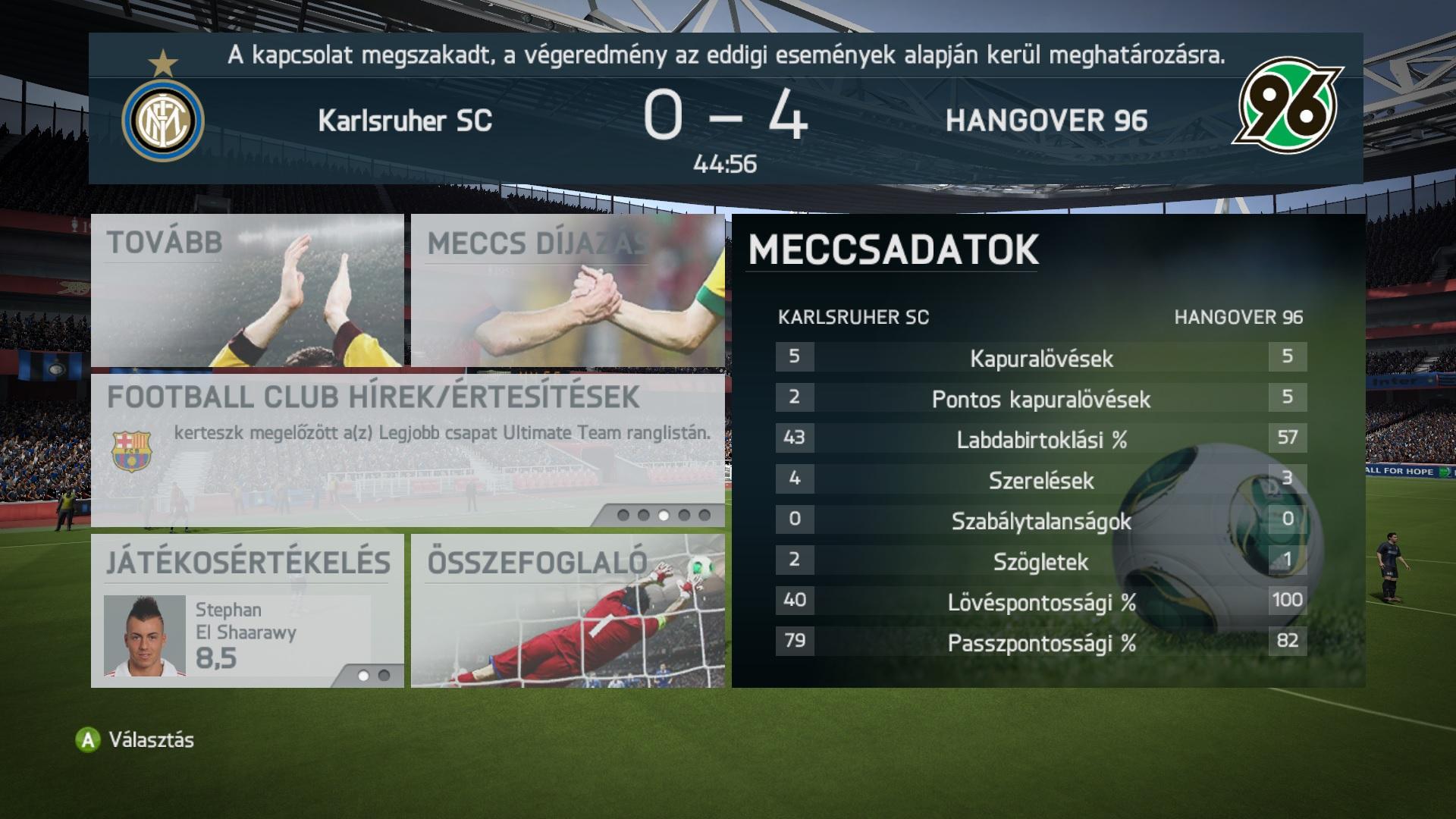 Most ezt tényleg komolyan gondolja az EA ?! Játszok online FUT idény mérkőzést, amit nagy nehézségek árán éppen hogy megnyerek, erre a végén kidob az egész rendszer mint macskát sz@rni ! Ráadásul BNF + hab a tortán, vissza se enged lépni az egész FUT-ba !
