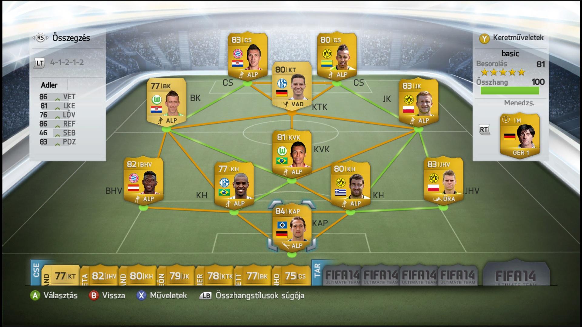 Valaki tudna nekem segíteni ? Szeretnék építeni egy kifejezetten ütőképes csapatot. A játék stílusomról annyit, hogy semmiképpen sem a letámadásról szól, inkább a védekezés, majd ebből kontrajáték, amiből beadások, kényszerítők, távoli lövések következnek. Nagyon sok felállást próbálgattam, de talán egyik sem működött annyira jól, mint a 4-1-4-1 -es felállás egy majdnem full juventus csapattal. Egészen az első osztályig masíroztam velük, aztán onnantól jött a fekete leves. Osztályokkal lejjebb csúsztam aztán túladtam az egész kereten. Aztán a minap azon kapom magam, hogy egyáltalán nem adja be a gép amiket eddig. Szinte esélytelen már a szélekről beadott labdákat megfejelni úgy, hogy gól is legyen belőle. Nagyon ritka hogy összejöjjön. Talán 10-ből egyszer ha sikerül. Szóval az lenne a harci feladat, hogy körülbelül 130.000 zsetonból kéne összefabrikálnom egy csapatot. A ligát és a játékosokat mindenkire rábíznám. Mindegy teljesen, hogy milyen team alakulna ki végül, de az összhang az ne legyen azért 3 meg hasonlók.