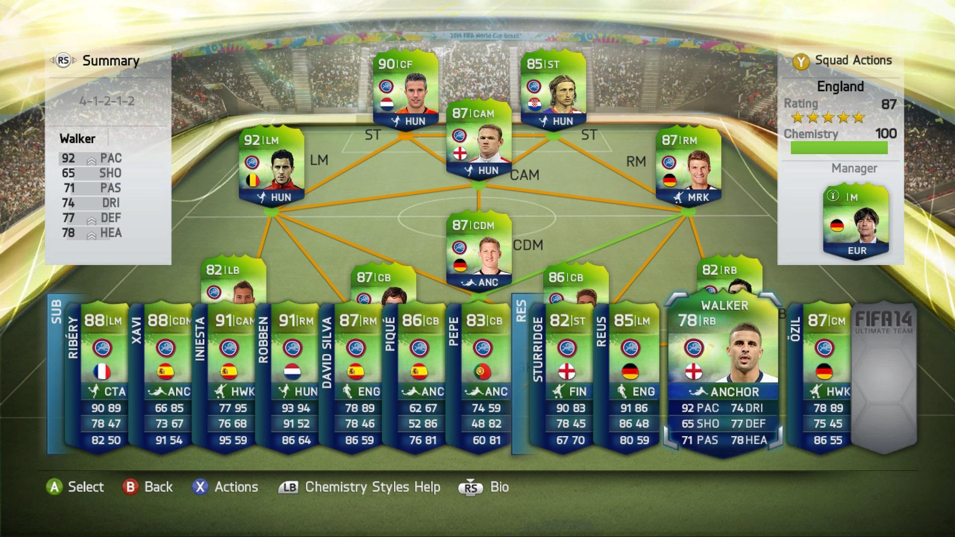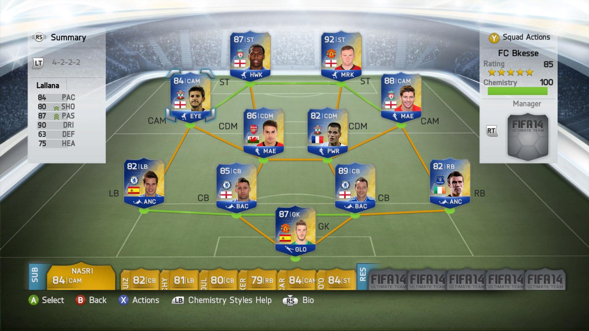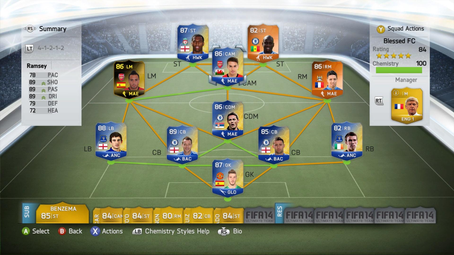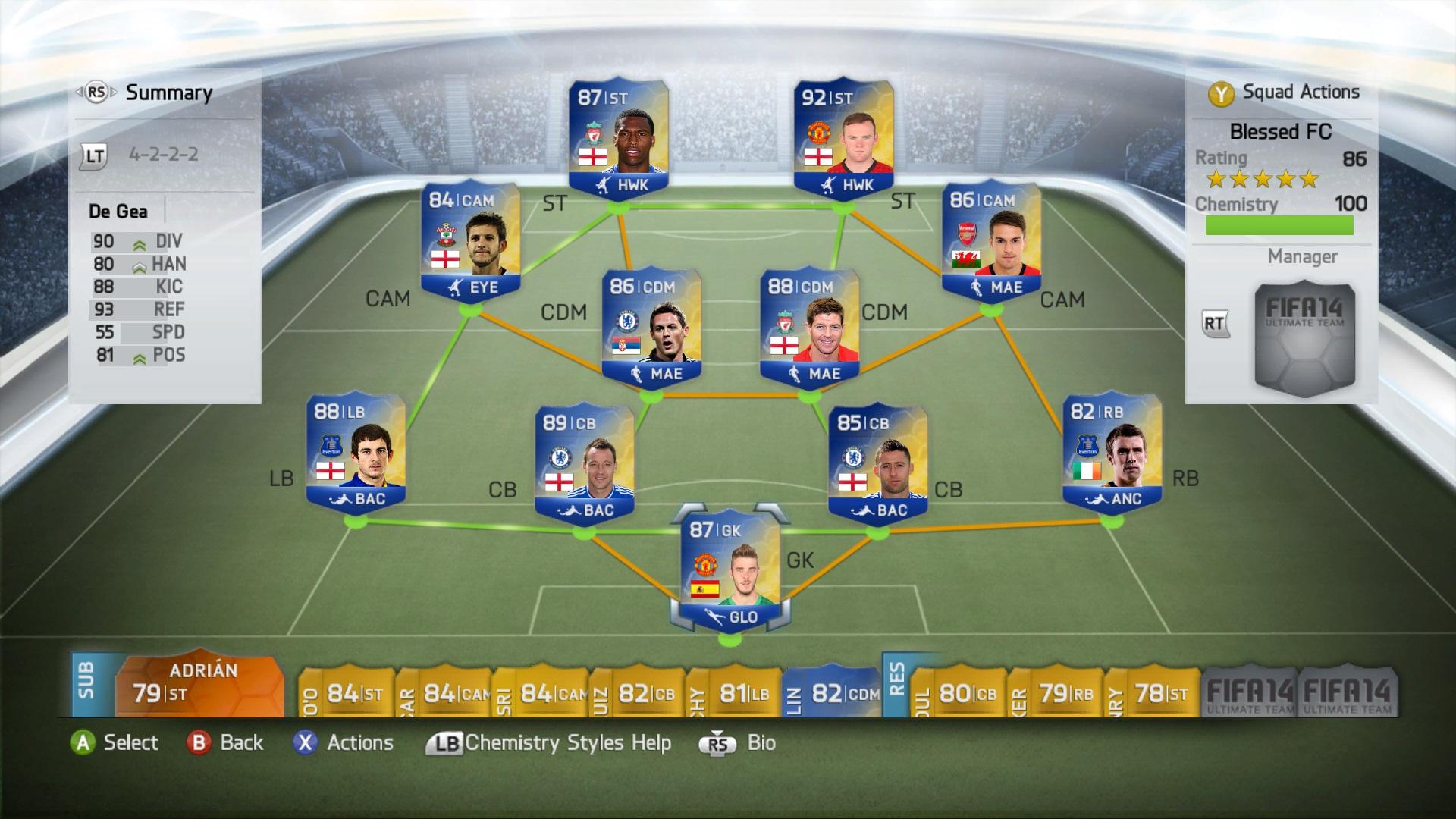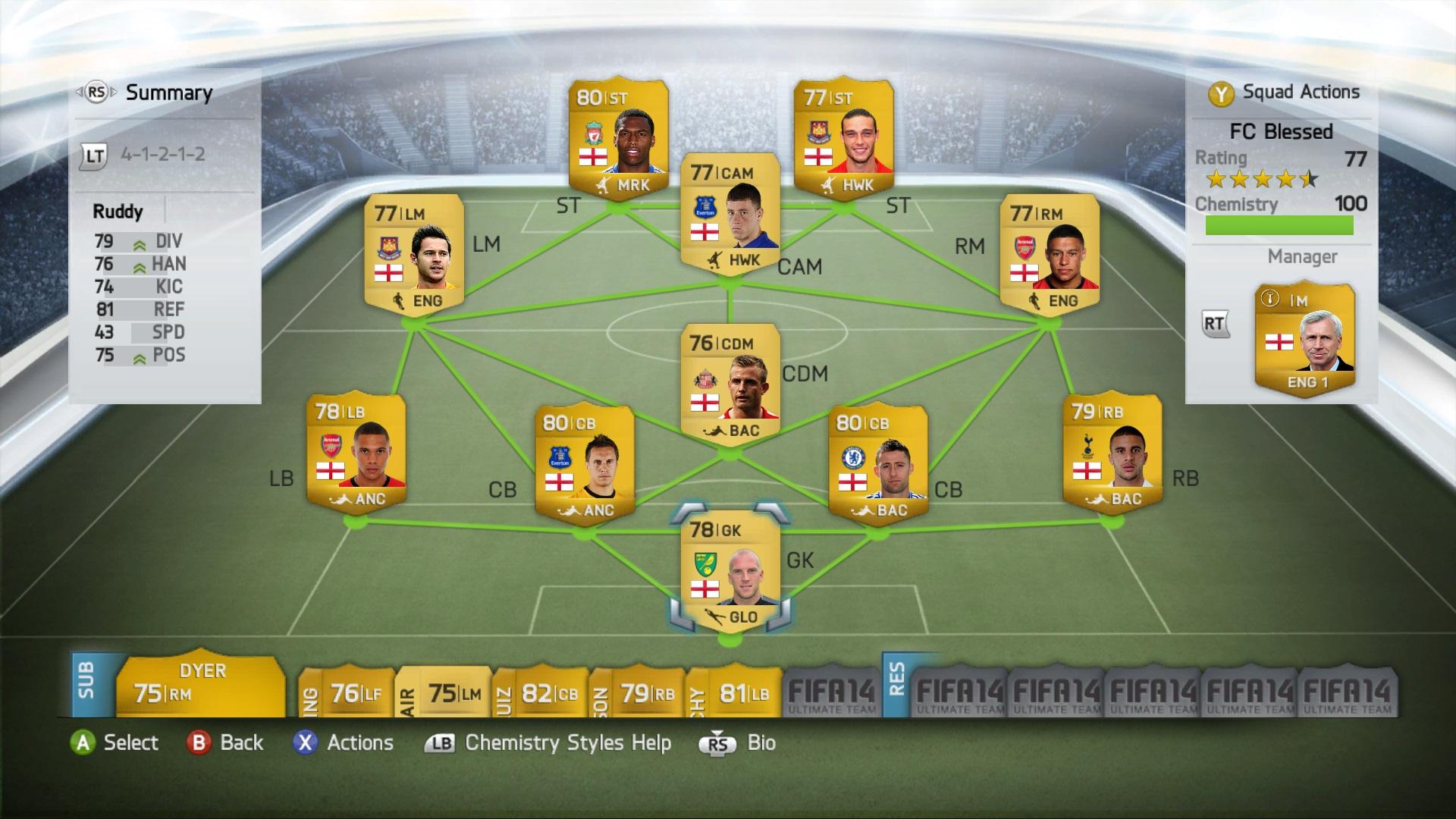 Még Sturridge, Cahill és Ramsey az, akin látszik hogy próbálkozik. Online csak kínlódtam velük a bennmaradásért. Eleinte "kék" Rooney volt Ba helyett. Olyanokat lőtt mint az állat. Kapufára, sokat... Tegnap meguntam a kínlódást és poénból csináltam egy ilyen csapatot.(sztem kevesebb mint 20K, a kék 2.850K-t ért)