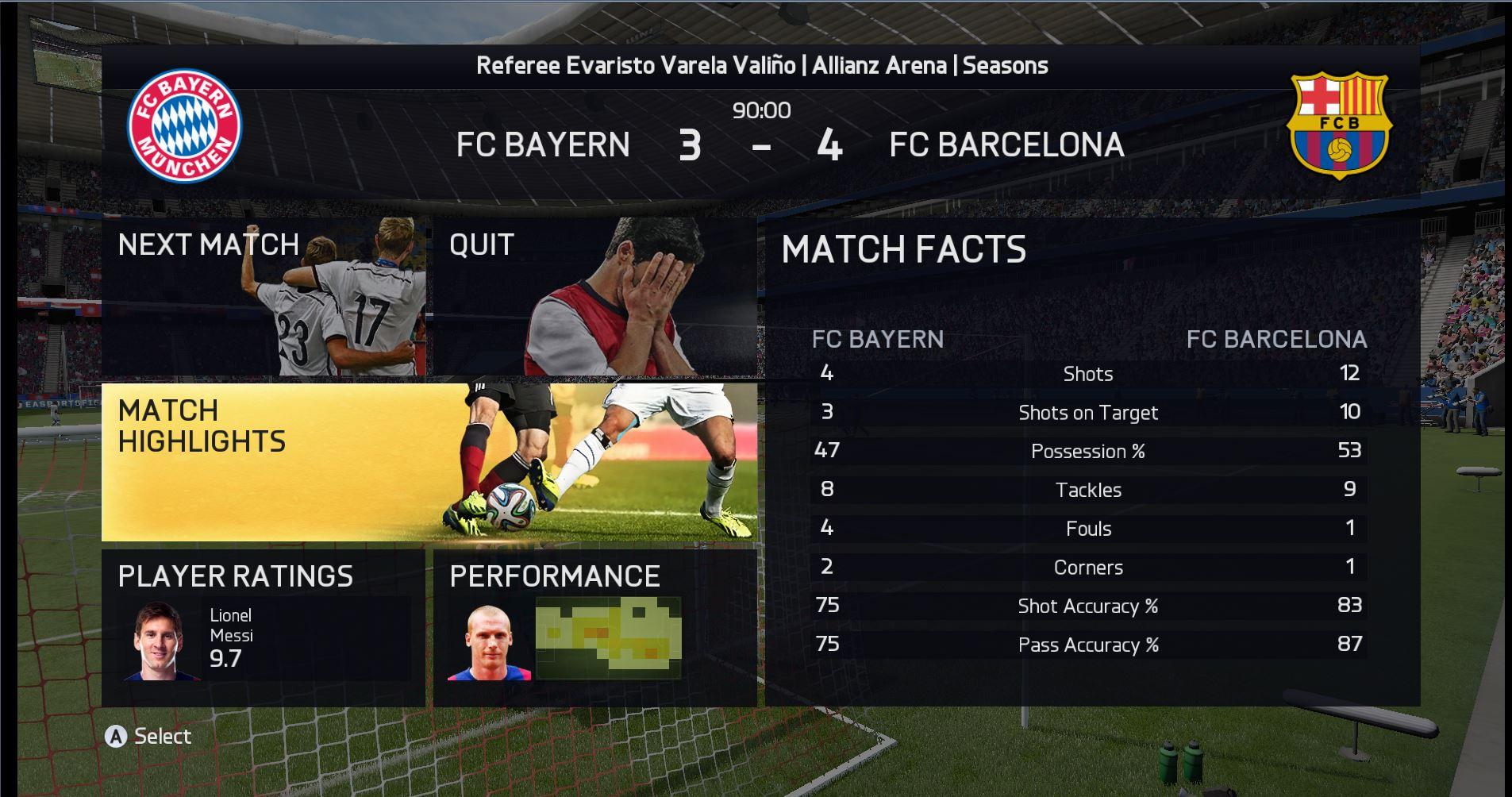 10 perc után már 3-0-ra vezetek Sima Seasons-ben, de tényleg mint kés a vajon, úgy mentem rajta keresztül, amikor csak akartam, aztán rendszeresen ziccereket kezdtem hibázni, a második félidő legelején aztán a kitörő Neymart elgáncsolta Lahmmal, piros lap. Majdnem egy félidő emberelőnyben, erre a hosszabbitásban szögletből 4 játékosom közül fejessel egyenlit, én meg a középkezdés után fogom Neymart, 5 star skills, uccu neki, átcseleztem magam a kapuig majd bevertem....