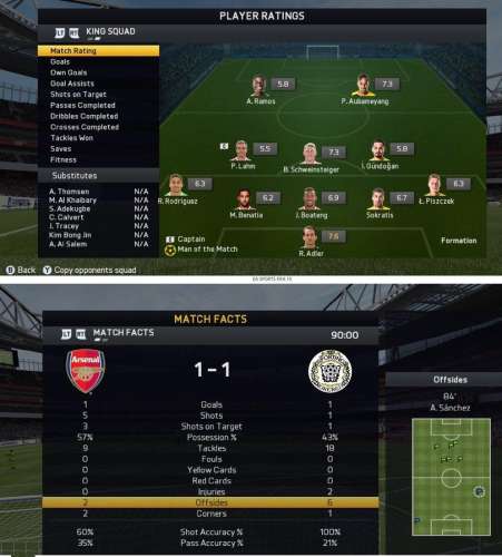 A meccset 3-0ra nyertem meg végül. Az első gólnál Sanchez-t sikerült teljesen véletlenül kiugratnom mikor csak a mellettem lévő társamnak akartam passzolni, de erre Kompany egy jó 60 méteres lapos keresztlabdával megtalálta a teljes mezőnyön keresztül Alexis-t aki olyan gyorsan spurizott, hogy nem akartam hinni a szememnek. Annyira abszurd volt az egész, ha én kapom akkor is csak nevettem volna.