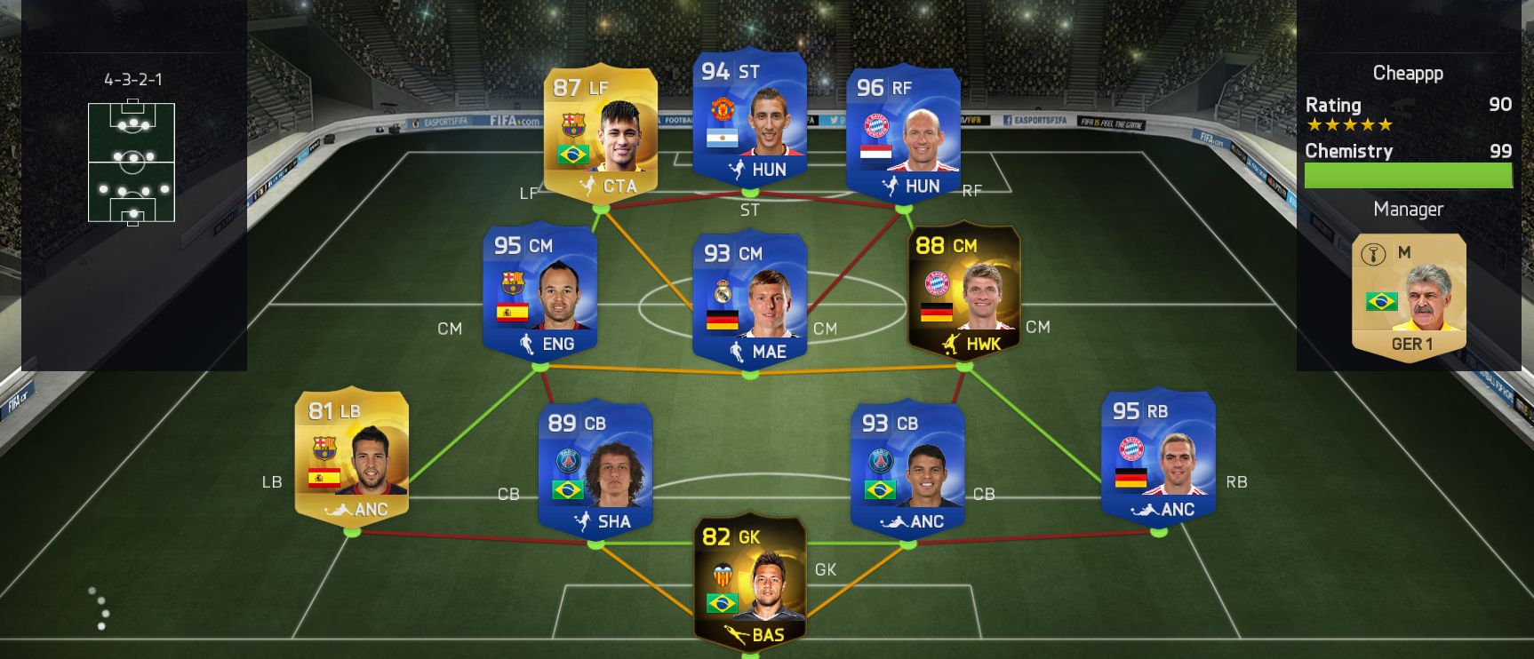 Képzeljétek most felállást váltottam, új taktika stb.... első meccs, mint a golyó úgy ment mindenki, passzok hiba nélkül, 3-0-nál ragequit-elt az ellen! Kíváncsi vagyok ez meddig tart, sejtem hogy nem sokáig! De így nem is esik jól nyerni............