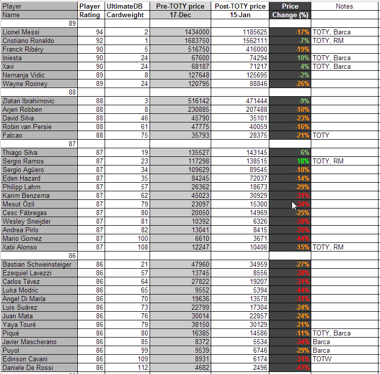 Stylerr ezt akartam én is felhozni témában, hogy a TOTY lapok alap kártyái valószínűleg felfele fognak növekedni nem pedig lefele csökkeni sajnos..