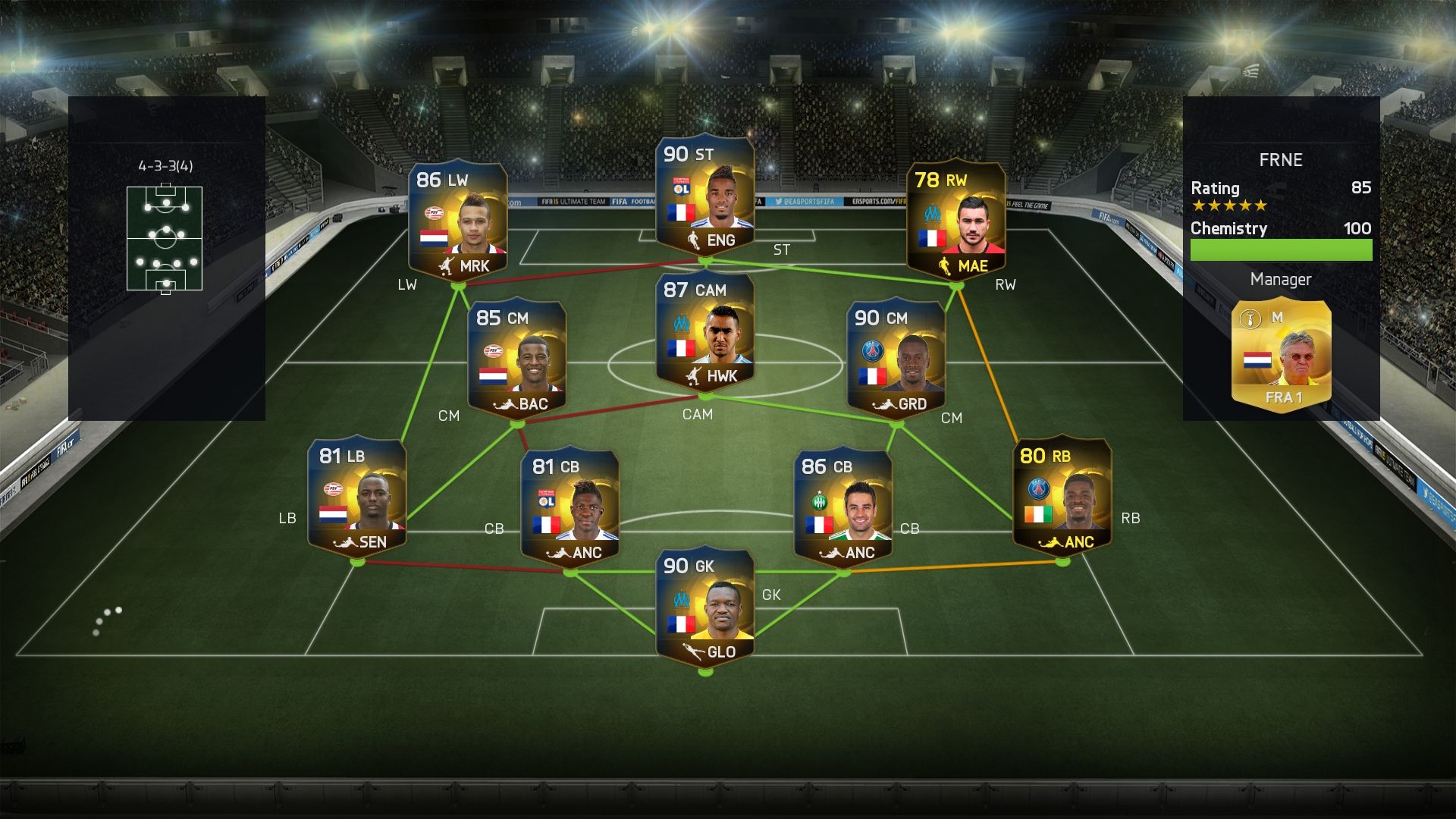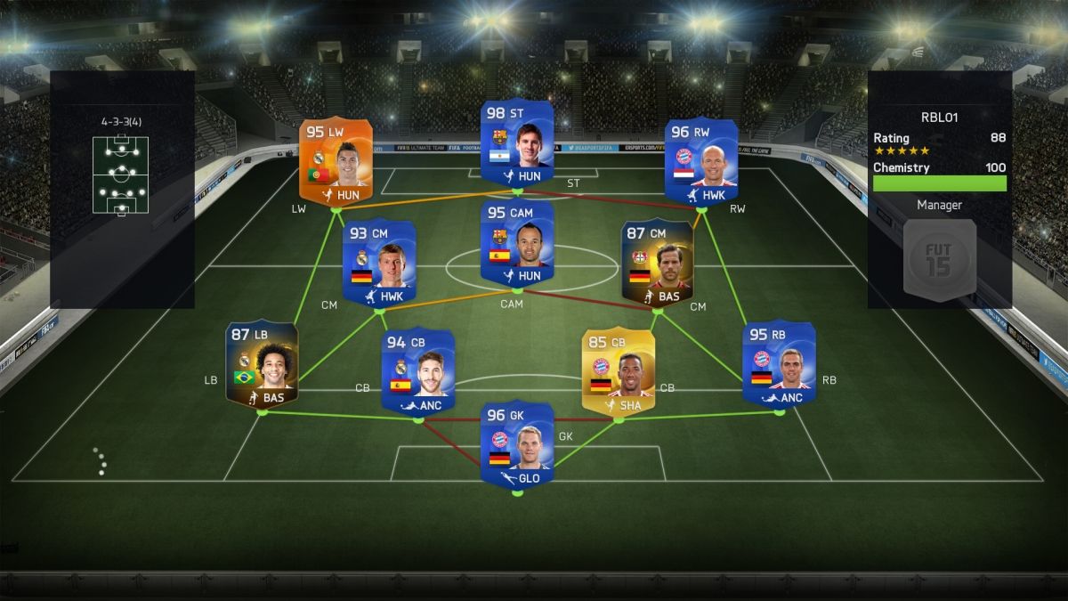 88-as team rating, TOTY Messi, TOTY Ronaldo, TOTY Robben elöl, MINDEN játékosa vagy kék vagy fekete volt, de 80%-ban inkább kék.