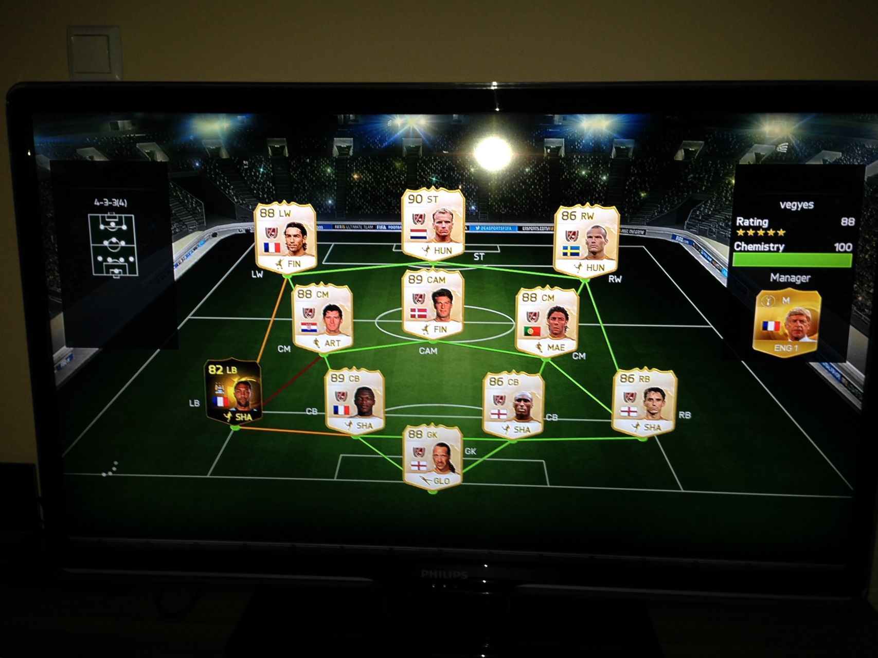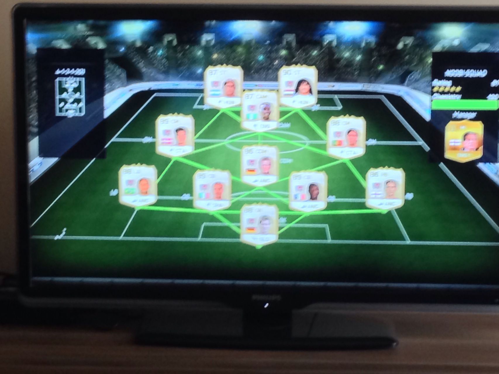 Emberek nem tudom mi volt ma,de nem nagyon tudtak ma megverni!!! 2-szer nyertem meg zsinórban a kupát! Nem tudom minek köszönhető,de nagyon ment ma.Kezdtem ma a szokásos 4-3-3(5) felállással és két vereség jött! Váltottam 4-3-3(3)-ra amit eddig nem nagyon favorizáltam.hogy ettől a váltástól vagy mitől vereség nélkül 12 meccs! Az egyik csapatom full bundesliga,a másik Seria A+Doumbia és Tosic 7-7-es chemmel!De szuperek voltak!Végre már egyszer jó volt a játék!!!!