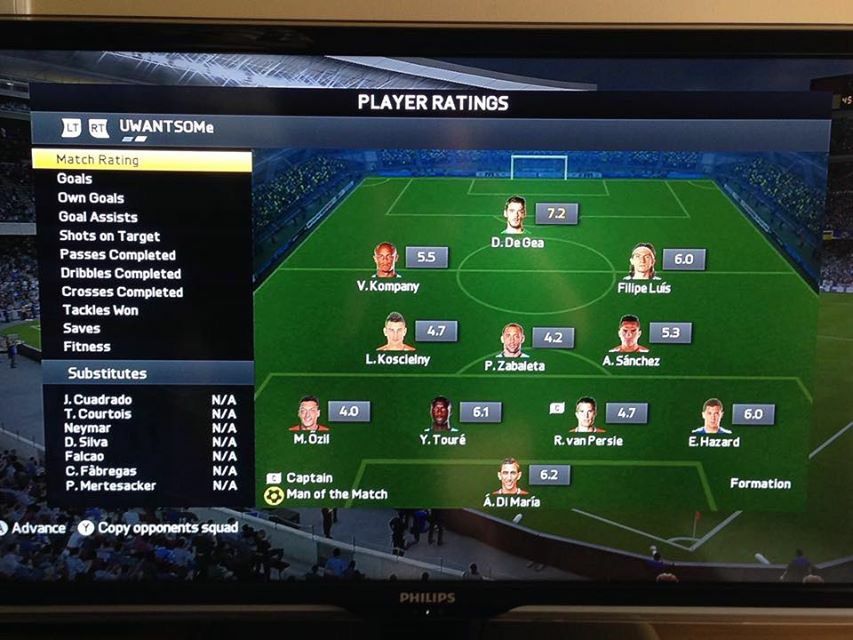Napok óta mivel szopat a gép,a gólokat a 97.-99.percekben kapom úgy hogy a védőim összefutnak vagy a kapusom magától csatárt játszik ezért is,és véleményem szerint tök mindegy hogy milyen játékosod van pl.míg egy Walcott-ot egy Mertesacker simán utólér vagy egy labdabiztos játékostól 5 méterre pattan el a labda de lehetne még sorolni...! Ezért ezt a két csapatot raktam össze. [link]