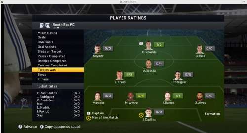 A hatodik meccsen gondoltam egyet és összekutyultam a keretemet. A látottak után nekem teljesen elegem lett ebből a szarból. Minden labda elém pattant, 4 gólt rúgtam amiknek valamely aspektusa mázli volt, ellenfelem kínkeservesen begyötört 2 gólt és mellé volt még legalább 5-6 ziccere is amik máskor gólt eredményeznek. A játékosaim persze össze vissza szaladgáltak a helyüket nem találva, gyengén passzoltak, de a kulcs pillanatokban mindig kisegített a gép... -
