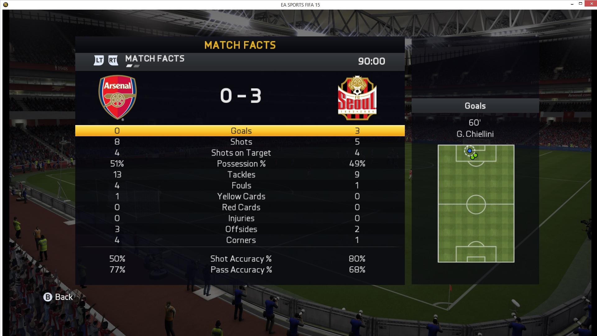 A meccs végi statisztikák: 1 Chiellini öngól és 2 Ronaldo gól. 2x nem sikerült megnyernem a hosszútávfutó versenyt... Nekem viszont sikerült 20 pontot szereznem 2x az oldalsó és 1x a keresztlécet találtam el... Meg SIF Sanchezzel sikerült mellé gurítanom a labdát 5 méterrel az üres kaputól. Ja és ahogy az az első képen nagyon jól látszódik minden támadásom azon a bronze 64-s védőn akadt el. Szóval: A jó büdös szőrőstalpú yeti román kurva anyáddal együtt kívánom, hogy a jó Isten tegyen a kopaszok közé hajas babának!A következő meccs végeredménye megérdemelt vereség volt. 2-1.