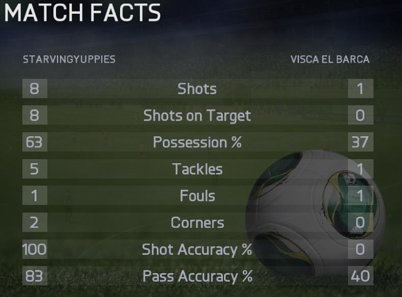 Nekem tök hasonló volt. Vmi real-barca keverék team, extra skilles játékosokkal, én meg a lightos Athletic Bilbaommal. Alapból a leggyengébb játékosa erősebb volt mint az én legerősebb játékosom. Mégis nyertem.(2-1) meg 2 kapufa, és ziccerek. Egy taktikája volt; beemelte a védelmem mögé - sikertelenül