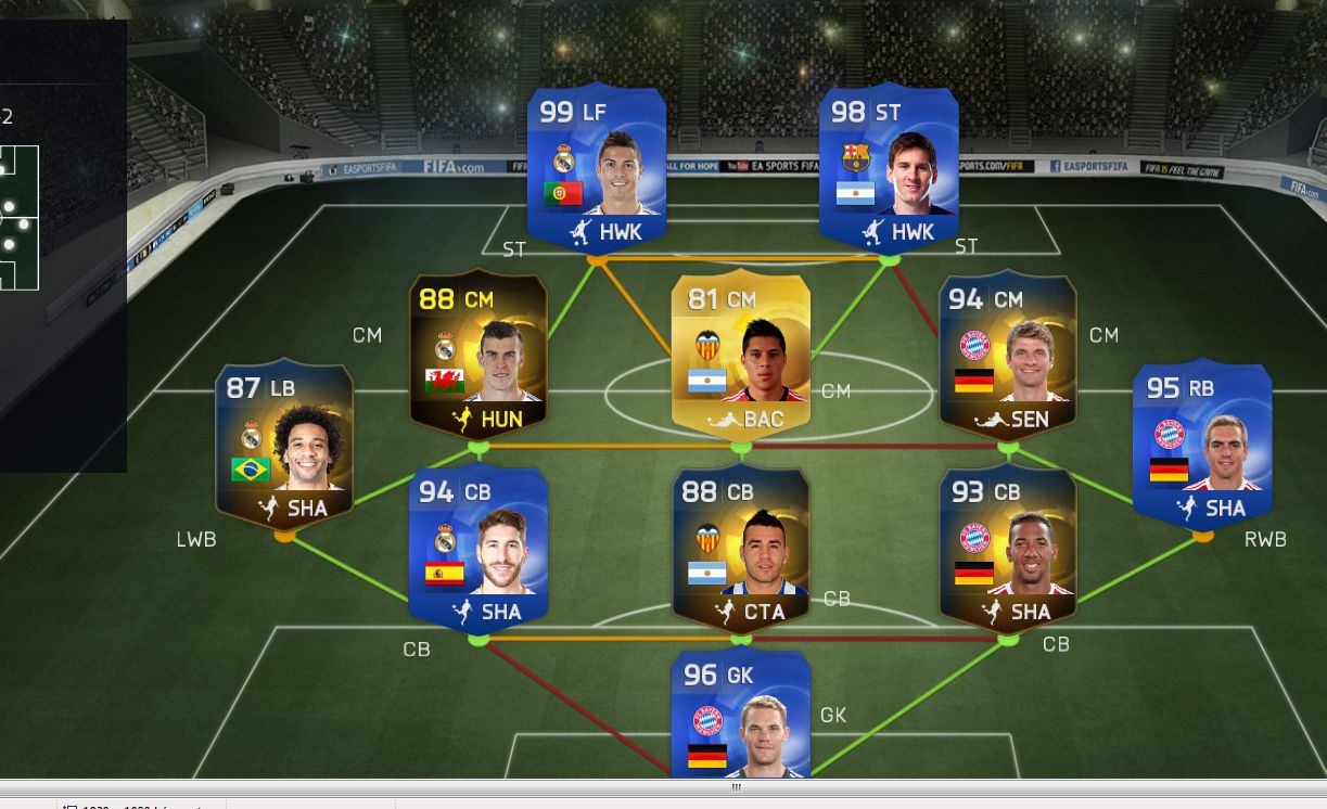 Na szóval IF Mascherano beszerezhetetlen plusz itt az én Messi-s csapatom, tesztelve, ütnek-vágnak: [link]
