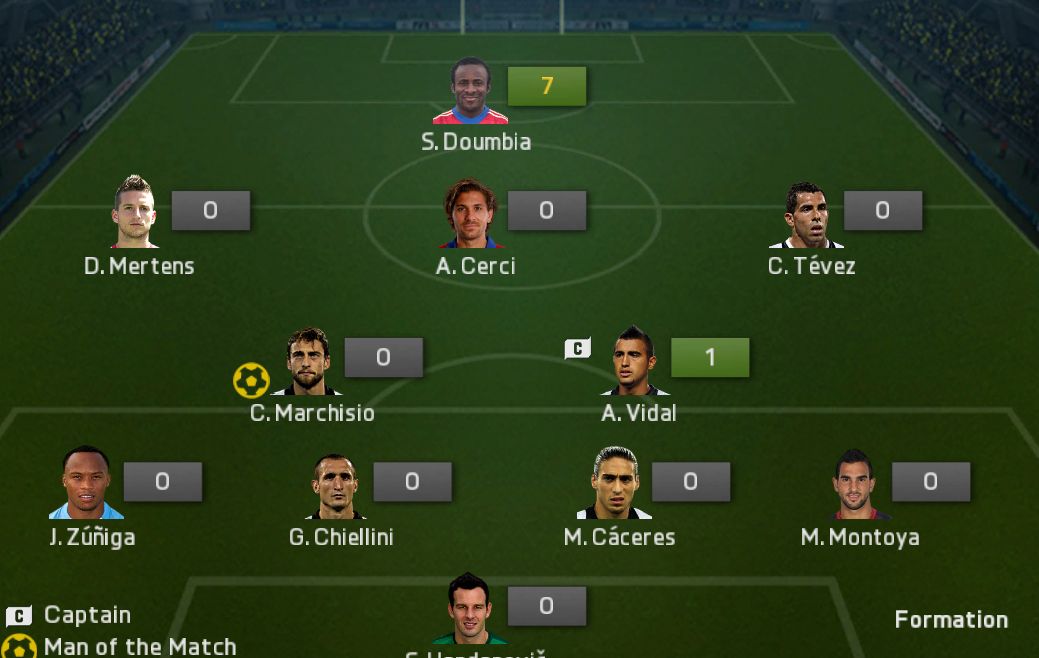 Eddig kb 10-12 meccset toltam így, az eleje döcögősen ment, de aztán ráéreztem a játékosok helyezkedésére, a felállásra stb.... ezt zsinórban 2 megnyert kupa támasztja alá. Tetszik a csatár játéka, hogy indítható, érkezik, stb... mert ugye nálam nem volt eddig ST, a CAM-ek is egyre jobban bejönnek ahogy ráérzek a 4 támadóval a kombinatív játékra. A védelem nyilván stabilabb a 2 CDM miatt, de hiába adok nekik instrukciót fent kolbászolnak támadásnál, ami annyira nem baj mert sokszor elkél a segítség, viszont ezért kell oda egy picit "technikásabbat" (Vidal, Ramires, Modric) tennem, legalább az egyiket, mert nem árt ha nem annyira tulok amikor elől segédkezik!Gyorsba ezeket dobtam össze tegnap, de még lesz finomítás, építés