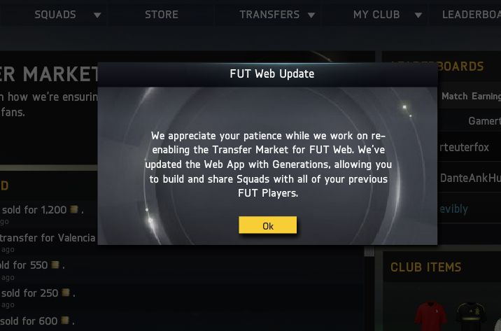 Aszondja, h dolgoznak a Webapp transfer funkció visszaállításán, addig is élesítik a Generations opciót, amivel a régi FUT-ok játékosaiból lehet csapatot összerakni. Hát, ez engem baromira nem izgat, az viszont jó, h ez az első hivatalos jele annak, h vissza fogják tenni a kereskedést a Webappba.