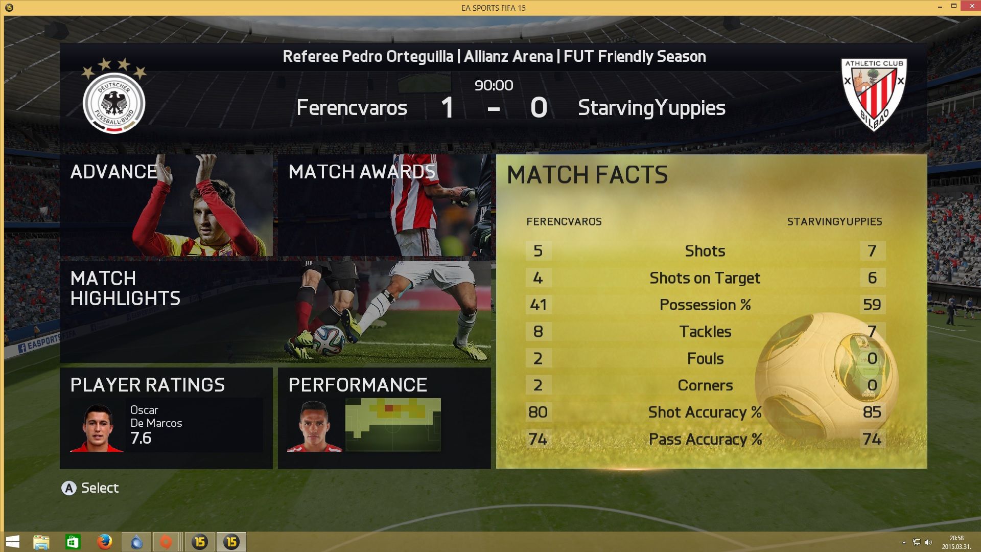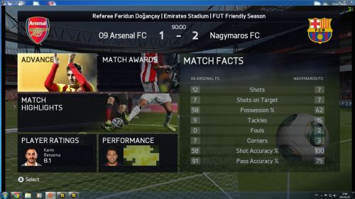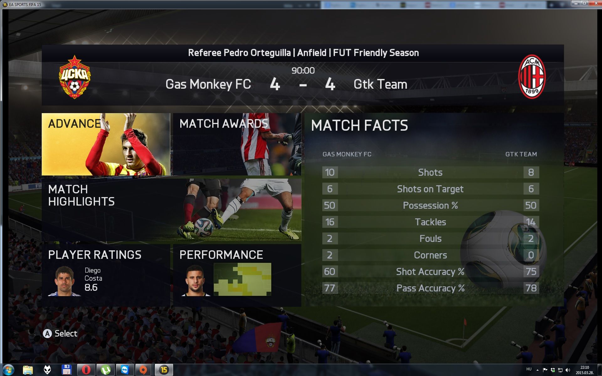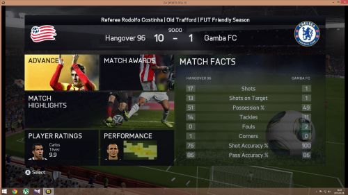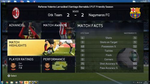 Letoltuk a meccsünket cicero89 kollégával, mely ez én sovány 1-0-ás győzelmemmel ért véget...pedig az elején ha nem véd pár nagyot a kapusom simán másképp alakul...köszönöm a meccset!...