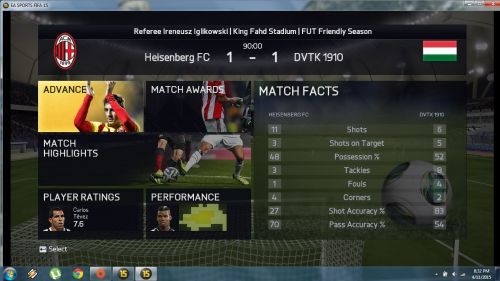 Sajnos miután szereztem VGA-t,kiderült,hogy a proci ,vagy a 4GB ram sem elég a Fifának,így én sajnos nem tudtam továbbjátszani.